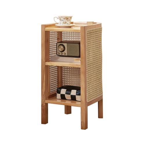 YCCHAH Side Tables Bedroom Retro Solid Wood Bedside Table Household Side Cabinet Coffee Table Rattan Small Side Table Bedroom Essentials(B)