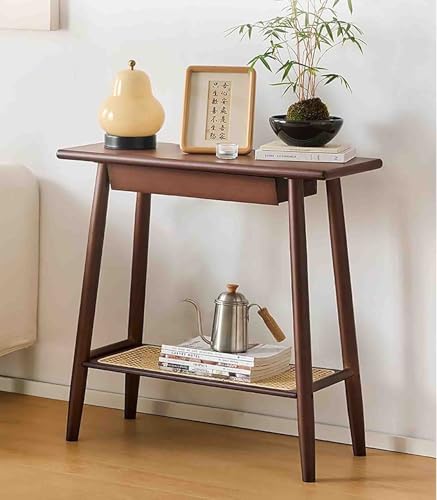POAYDHC Bamboo Entryway Console Table with Drawer,Narrow Sofa Side Table with Rattan Storage Shelf, for Entrance Hallway Living Room