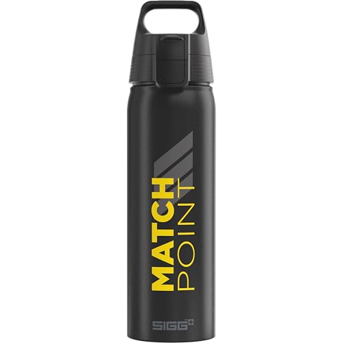 Sigg - Aluminum Water Bottle - WMB Pathfinder Match Point - Climate Neutral Certified - Suitable for Carbonated Beverages - Leakproof & Lightweight - BPA Free - Black with Design - 0.75 L