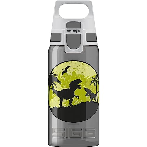 Sigg - Sports Water Bottle For Kids - Viva One Jurassica - Suitable For Carbonated Drinks - Leakproof - Dishwasher Safe - BPA Free - School & Bike - Green - Dinausor Design - 0.5L