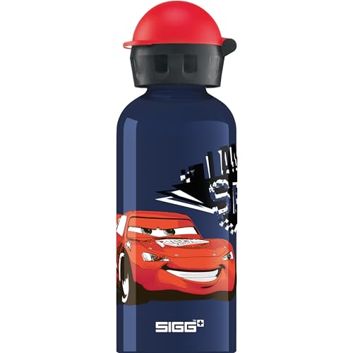 Sigg - Aluminium Water Bottle For Kids - KBT Cars Speed (Disney) - Leakproof - Lightweight - BPA Free - CO2 Partner Certified - School & Sports - Dark Blue - Lightning McQueen Design - 0.4L