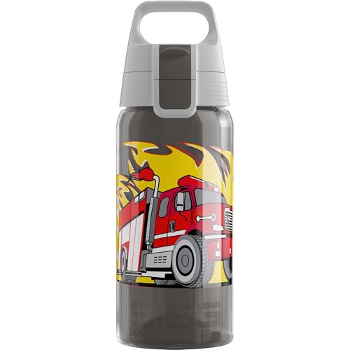 Sigg - Sports Water Bottle For Kids - Viva One Firetruck - Suitable For Carbonated Drinks - Leakproof - Dishwasher Safe - BPA Free - School & Bike - Grey - 0.5L