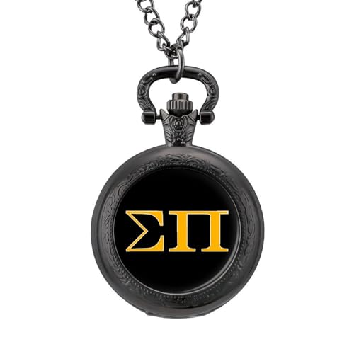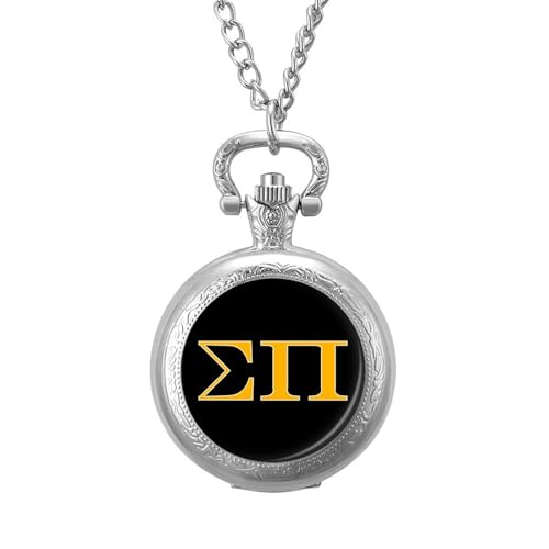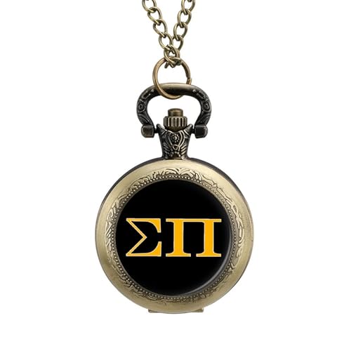 Sigma Pi Vintage Pocket Watch with Chain Arabic Numerals Scale Quartz Pocket Watches Gifts for Men Women