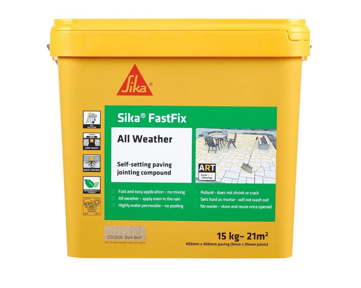 Sika – FastFix All Weather Self-Setting Paving Jointing Compound – Ready to Use – No Mixing Required – Dark Buff – 15kg – 21 sq. m