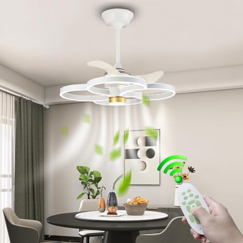 VFCDBNM Ceiling Fan with light modern creative white chandelier 6 speed wind reversible blade silent ceiling fan with lighting with remote control dimming suitable for bedroom living room dining room