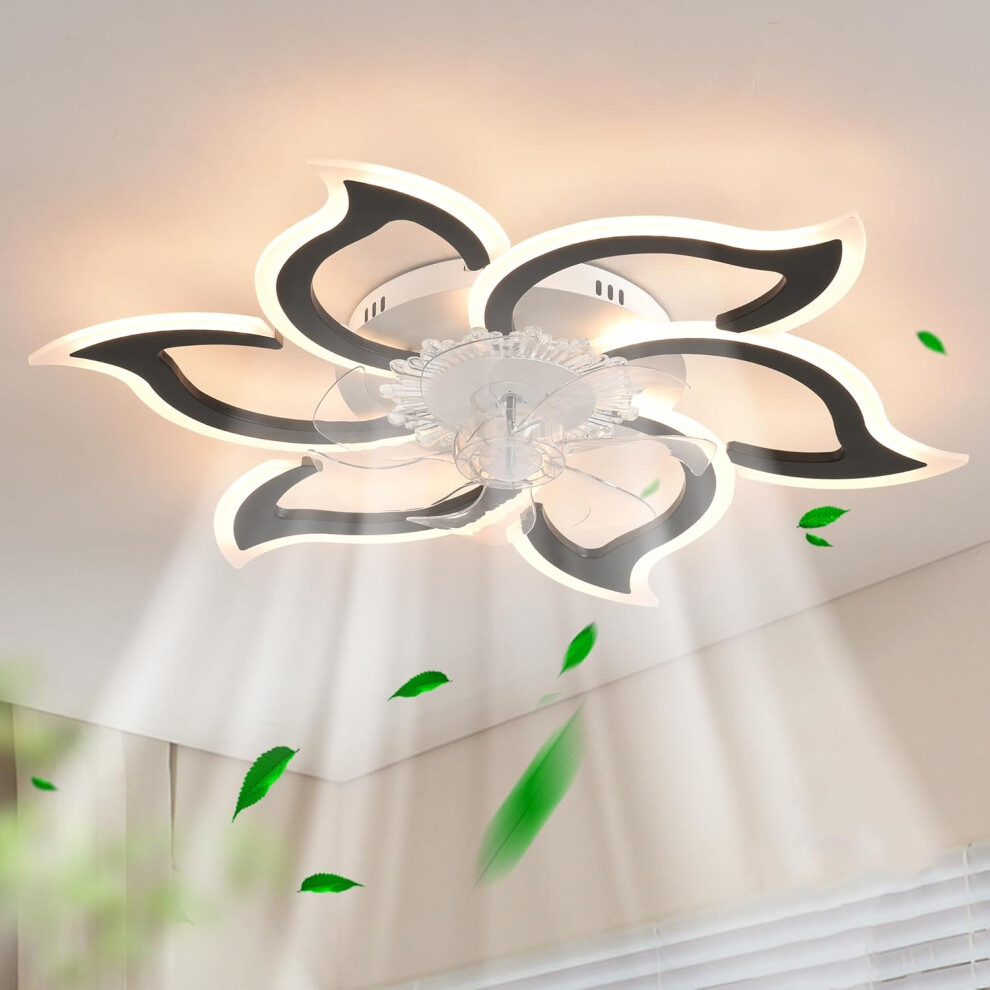 VFCDBNM Ceiling Fan with Lighting and Remote Control Silent White Flower Acrylic Lamp Shade Ceiling Light with Fan LED Dimmable Reversible Modern Light with Fan for Bedroom Office Children's Room