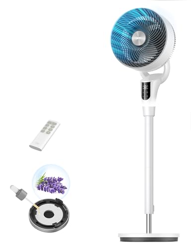 DREO 20dB Silent Standing Fan for Bedroom, 42" Pedestal Fans with Remote, 90° Oscillating, 90° Manual Vertical Cooling Fan, 8 Speeds, Adjustable Height, 8H Timer, Child Lock, LED Display,[Upgraded]