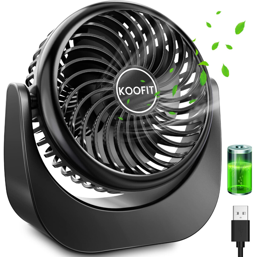 KOOFIT Desk Fan, USB Desk Fan, USB Fan Silent Powerful Table Fan for Bedroom, Mini Desk Fan USB Rechargeable, 360? Rotation Desktop Fan for Office,