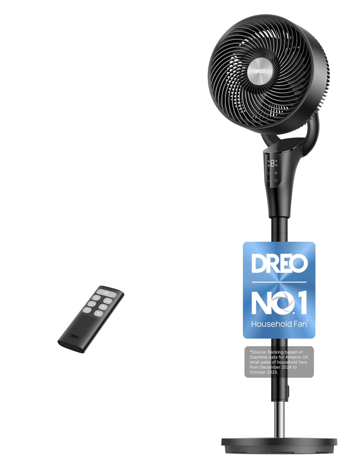 DREO 20dB Silent Standing Fan for Bedroom, 42" Pedestal Fans with Remote, 90° Oscillating, 90° Manual Vertical Cooling Fan, 8 Speeds, Adjustable Height, 8H Timer, LED Display, Child Lock, [Upgraded]