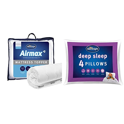 Silentnight Airmax Mattress Topper - Deep Thick Mattress Toppers Pad Breathable Cooling Soft Comfy Plump - Small Double, White, 548533GE & Deep Sleep Pillow Pack of 4