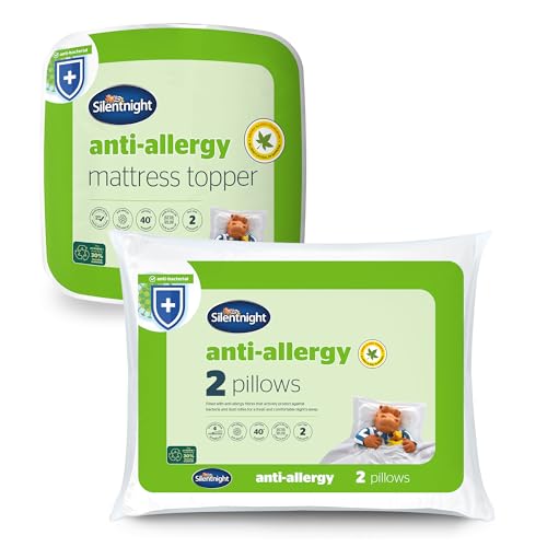 Silentnight Anti-Allergy Double Mattress Topper - Thick Deep Mattress Pad Protecting & Anti-Allergy Pillows 2 Pack – Soft Medium Support Anti Bacterial