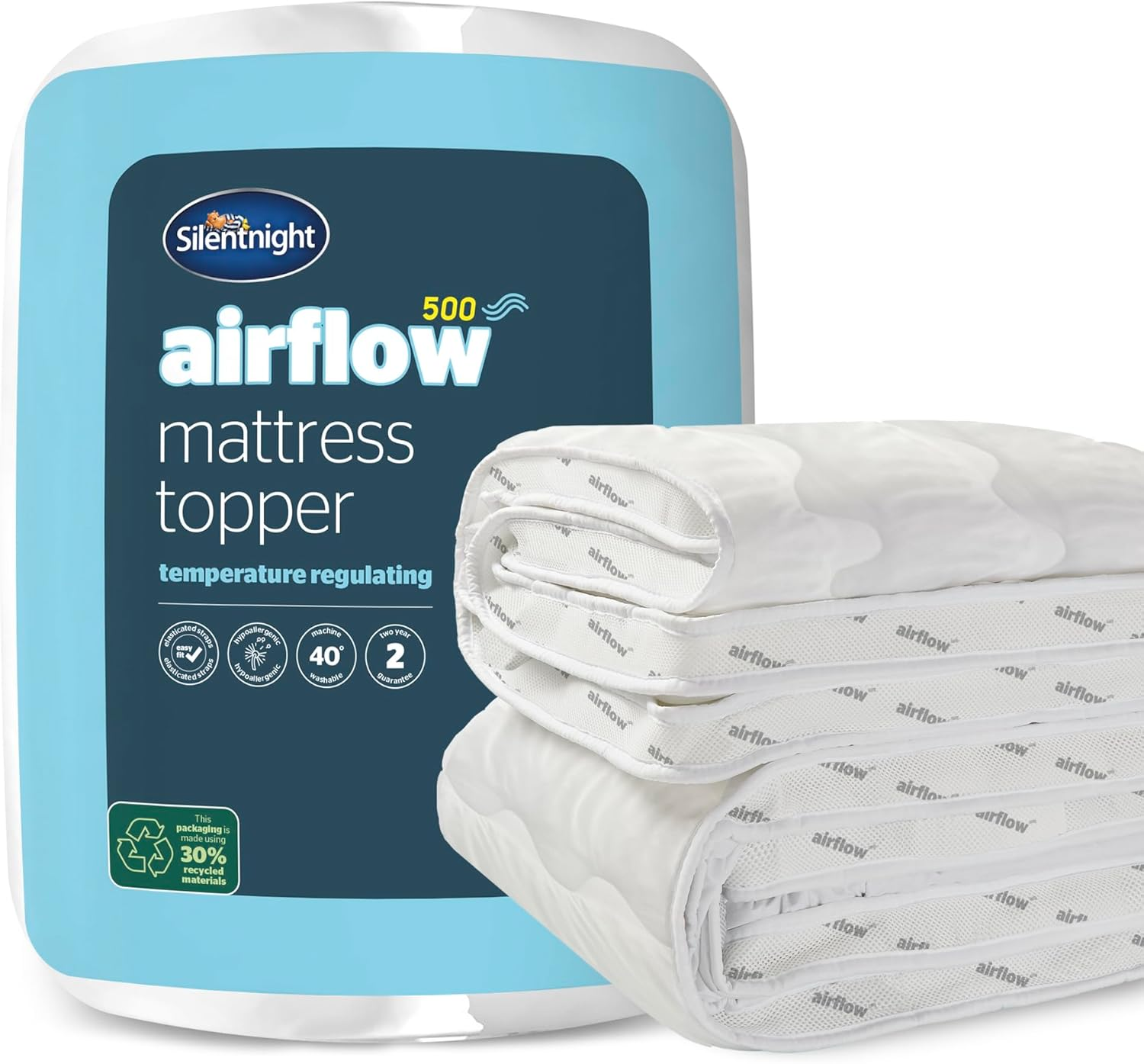 Silentnight Airmax 500 Double Mattress Topper - Thick Deep Fitted Enhancer with 5cm Cushioning, Mesh Sides to Increase Airflow and Ela