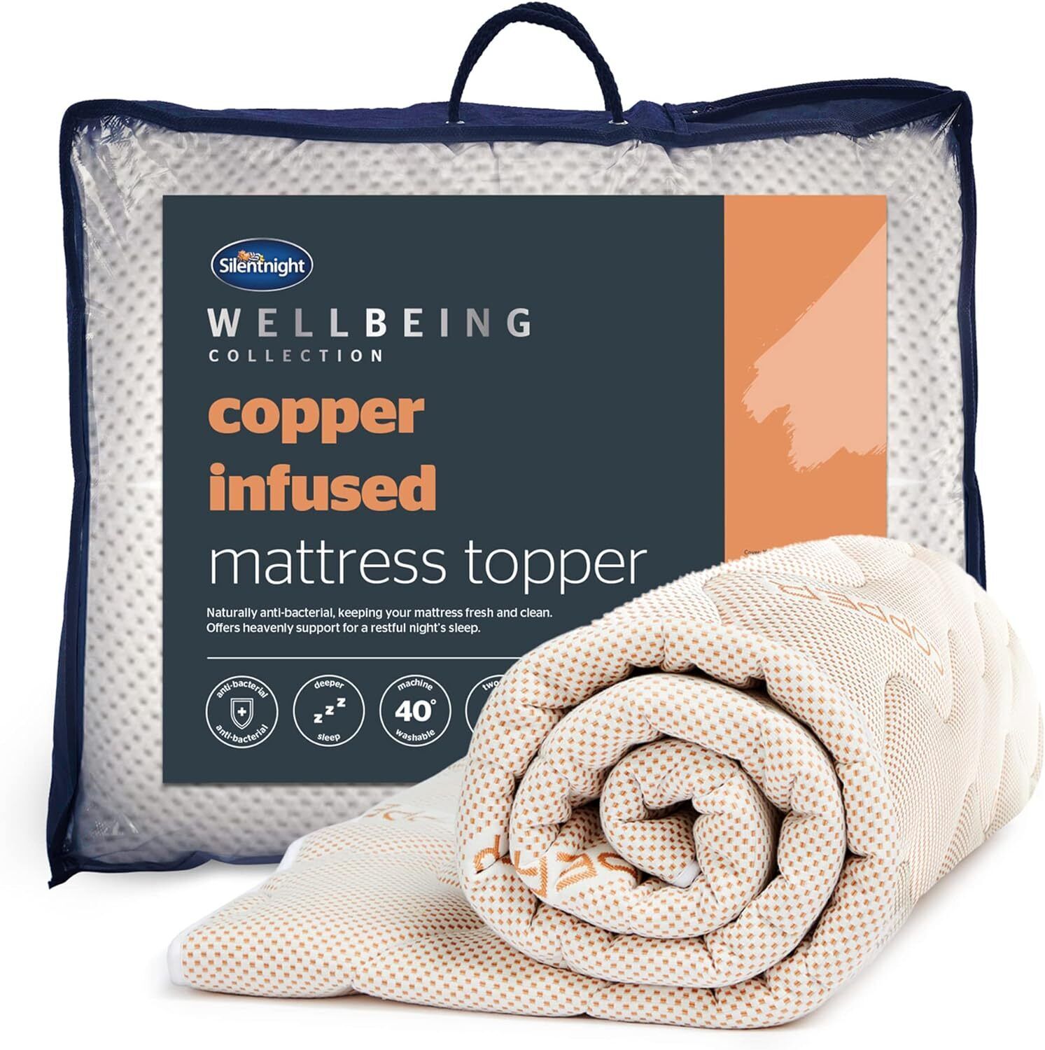 Silentnight Wellbeing Copper Double Mattress Topper - Natural Anti-Allergy, Cooling and Anti-Bacterial Properties of Copper - Supportive and Machine Washable - Double Bed, White, (549295GE)