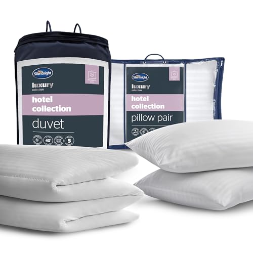 Silentnight Hotel Collection Bed Set - Luxury Hotel Quality 10.5 Tog Duvet and Pillow Pair Bundle - Premium Soft & Silk Touch - Hypoallergenic and Machine Washable, Double