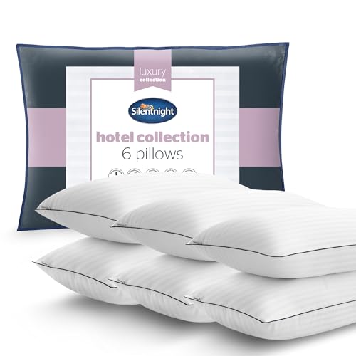Silentnight Luxury Hotel Collection Piped Pillow - Hotel Quality Stylish Pillow Soft Medium Support for Back & Side Sleepers - Filled with Finest Fibres, Hypoallergenic and Machine Washable, Pack of 6