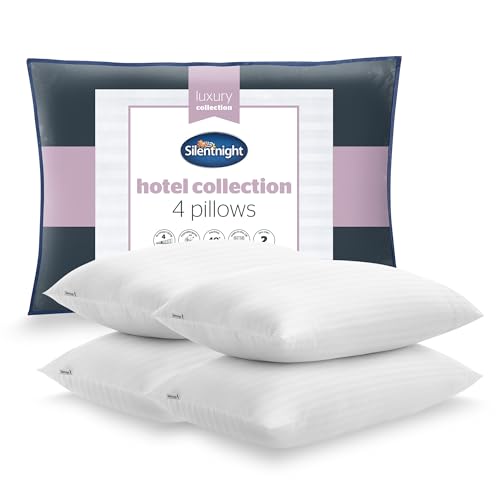 Silentnight Hotel Collection Pillows 4 Pack - Luxury Hotel Quality Pillows Soft Medium Support for Back and Side Sleepers Comfy Supportive - Hypoallergenic and Machine Washable - Pack of 4