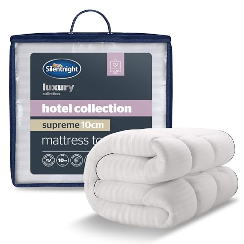 Silentnight Hotel Collection Supreme Mattress Topper - 10cm Thick Deep for Comfort - Filled with Finest Fibres to Rejuvenate Your Bed - Soft Quilted Embossed Cover and Elasticated Straps, Super King