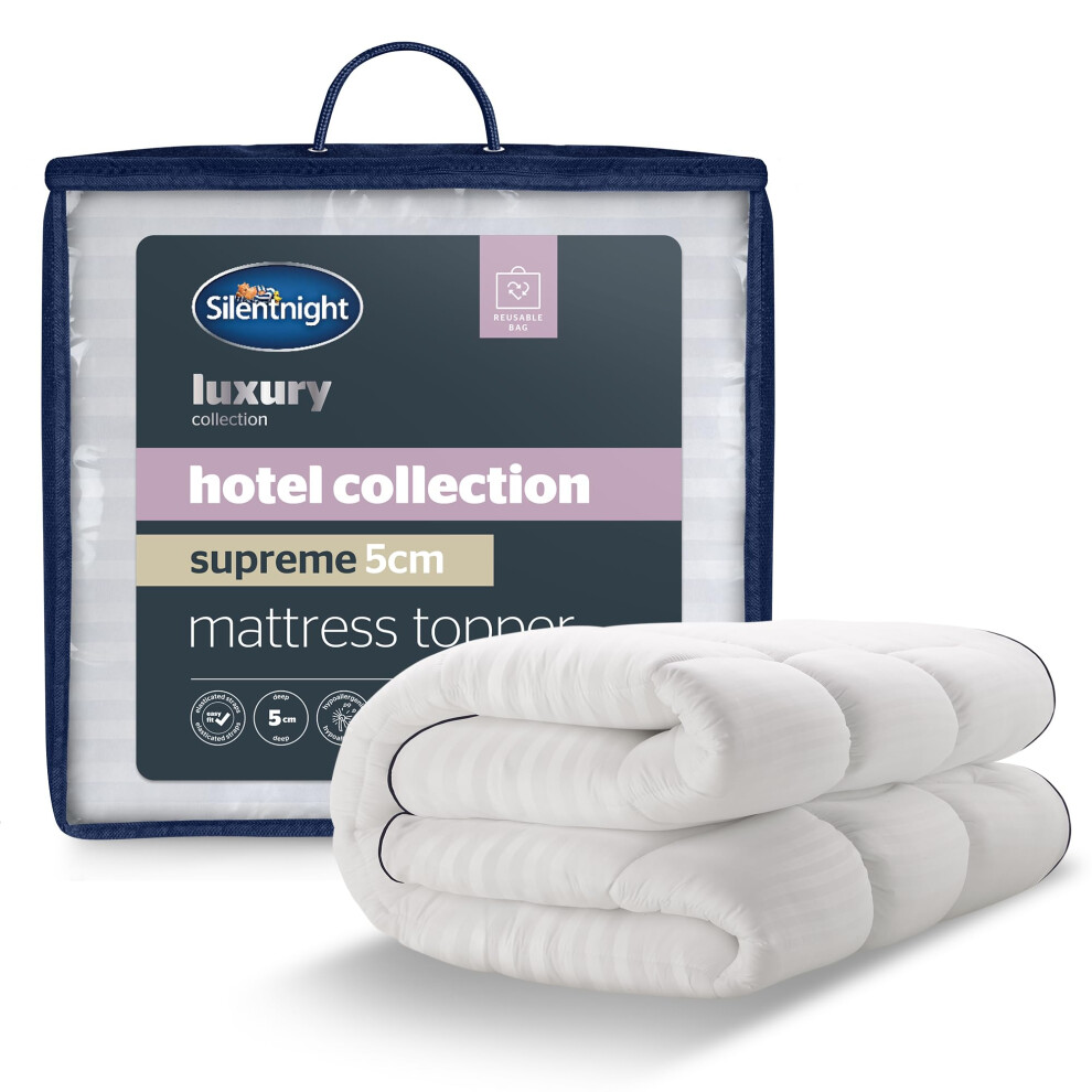 Silentnight Hotel Collection Mattress Topper Double Bed - Luxury Soft Silky Comfortable 5cm Thick Deep Mattress Protector Pad Cover with Deep Fit
