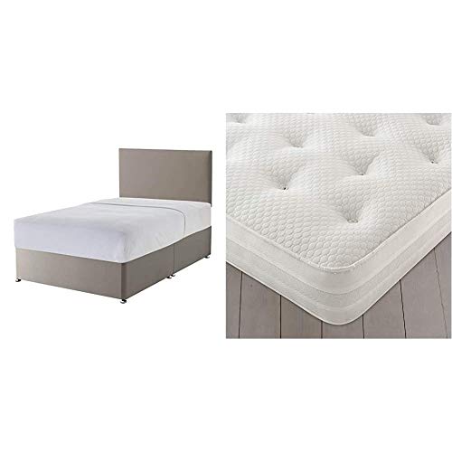 Silentnight Non Storage Divan| Sandstone | Small Double with 1400 Eco Comfort Mattress | Firm | Small Double