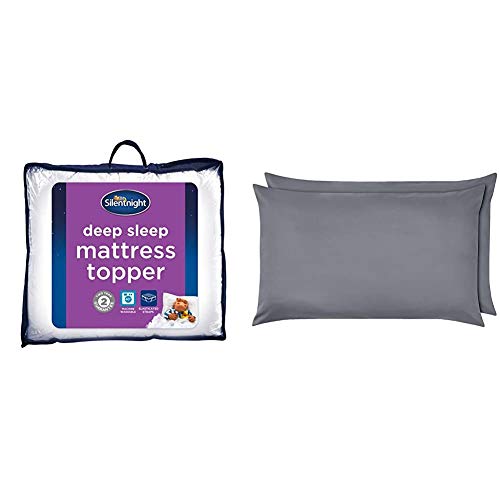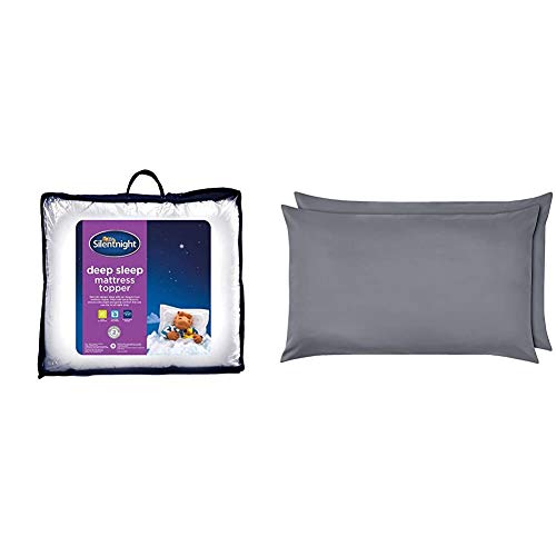 Silentnight Deep Sleep Mattress Topper, White, Double & Amazon Basics Microfibre Pillowcases, Dark Grey – Set of Two