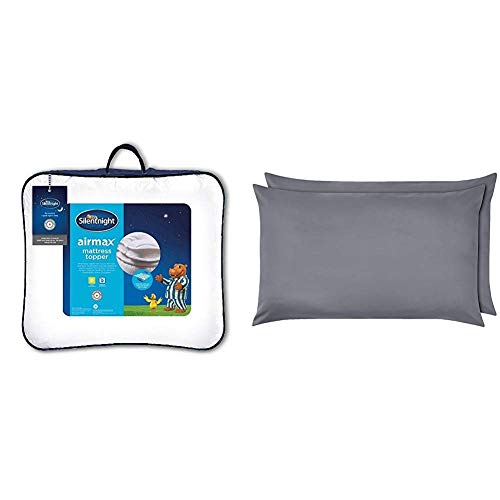 Silentnight Airmax Mattress Topper, Polyester, White, Double & Amazon Basics Microfibre Pillowcases, Dark Grey – Set of Two