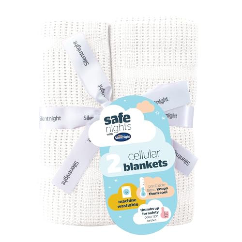Silentnight Safe Nights Baby Blanket - Pack of 2 Soft 100% Cotton Cellular Baby Blanket for Newborn Ideal for Cot, Crib, Moses Basket and Pram - Baby Essentials - 2 Pack - White