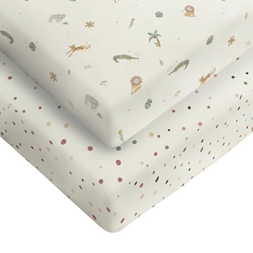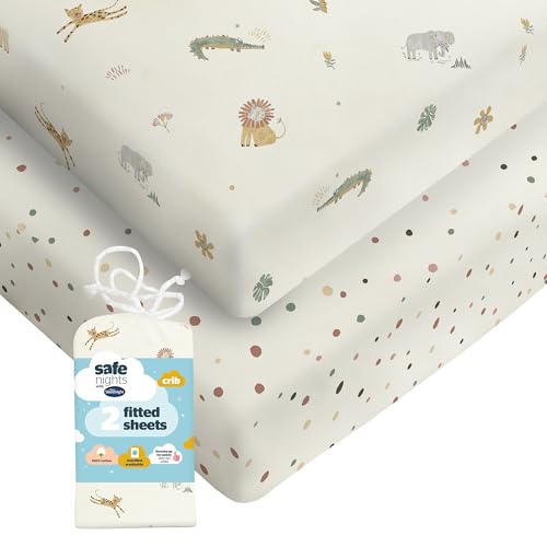 Silentnight Safe Nights Fitted Sheet - Crib Mattress - Breathable 100% Cotton Jersey - Super Soft Kind to Baby Skin - Secure Fit with Elasticated Corners - 2 Pack, Crib, Safari