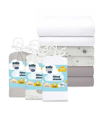 Silentnight Safe Nights Fitted Sheet Bundle - Celestial/Grey & White
