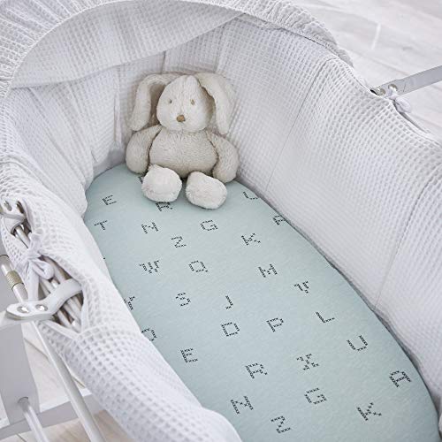 Silentnight Safe Nights Alphabet Fitted Sheet - Duck Egg - Moses Basket