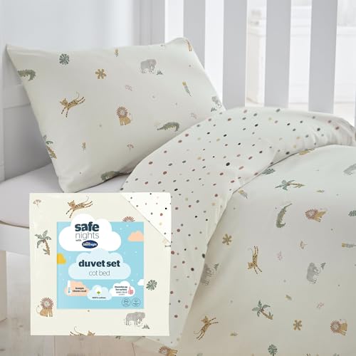 Silentnight Safe Nights Cot Bed Duvet Set - Breathable 100% Cotton Jersey - Super Soft Kind to Skin - Duvet Cover & Pillowcase for Toodler Child Junior Quilt - 150x120cm - Hypoallergenic, Safari