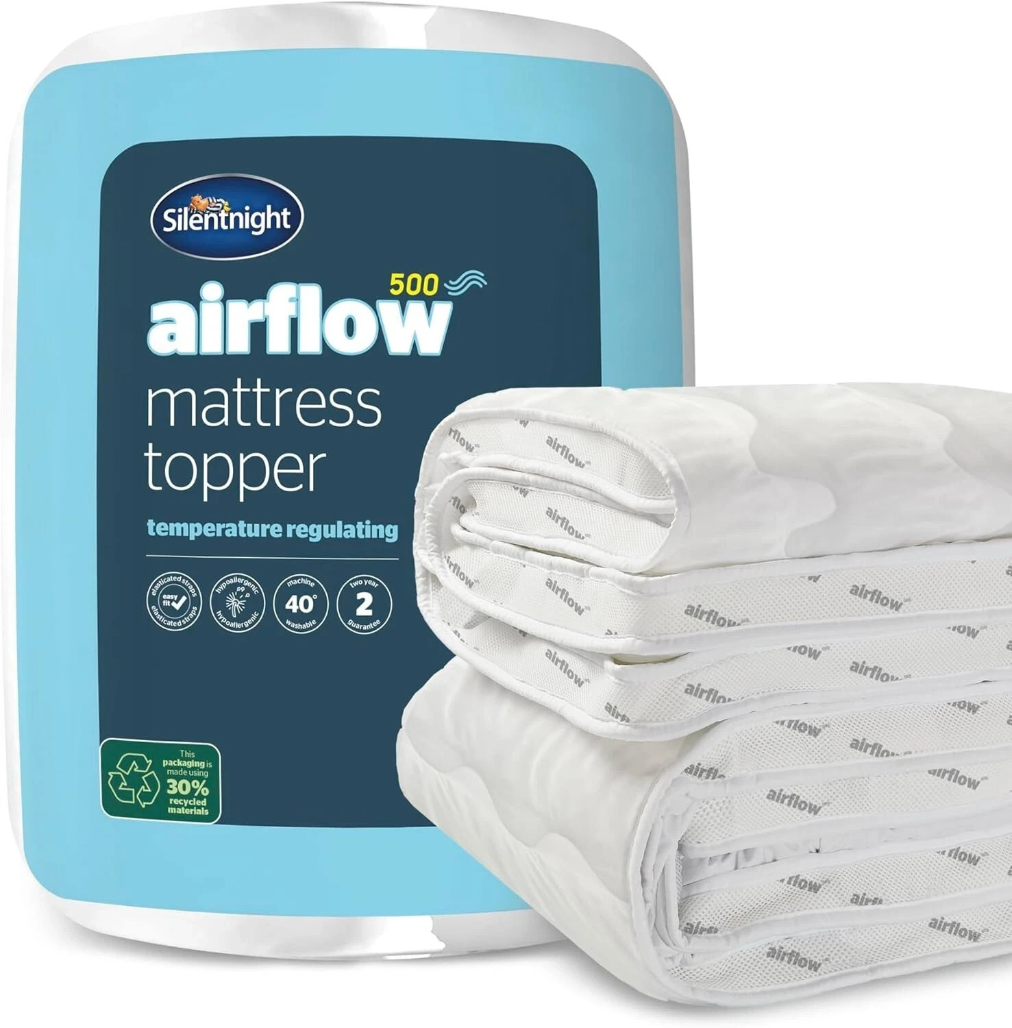 Silentnight Airflow Single Mattress Topper White –190cm x 90cm -Single
