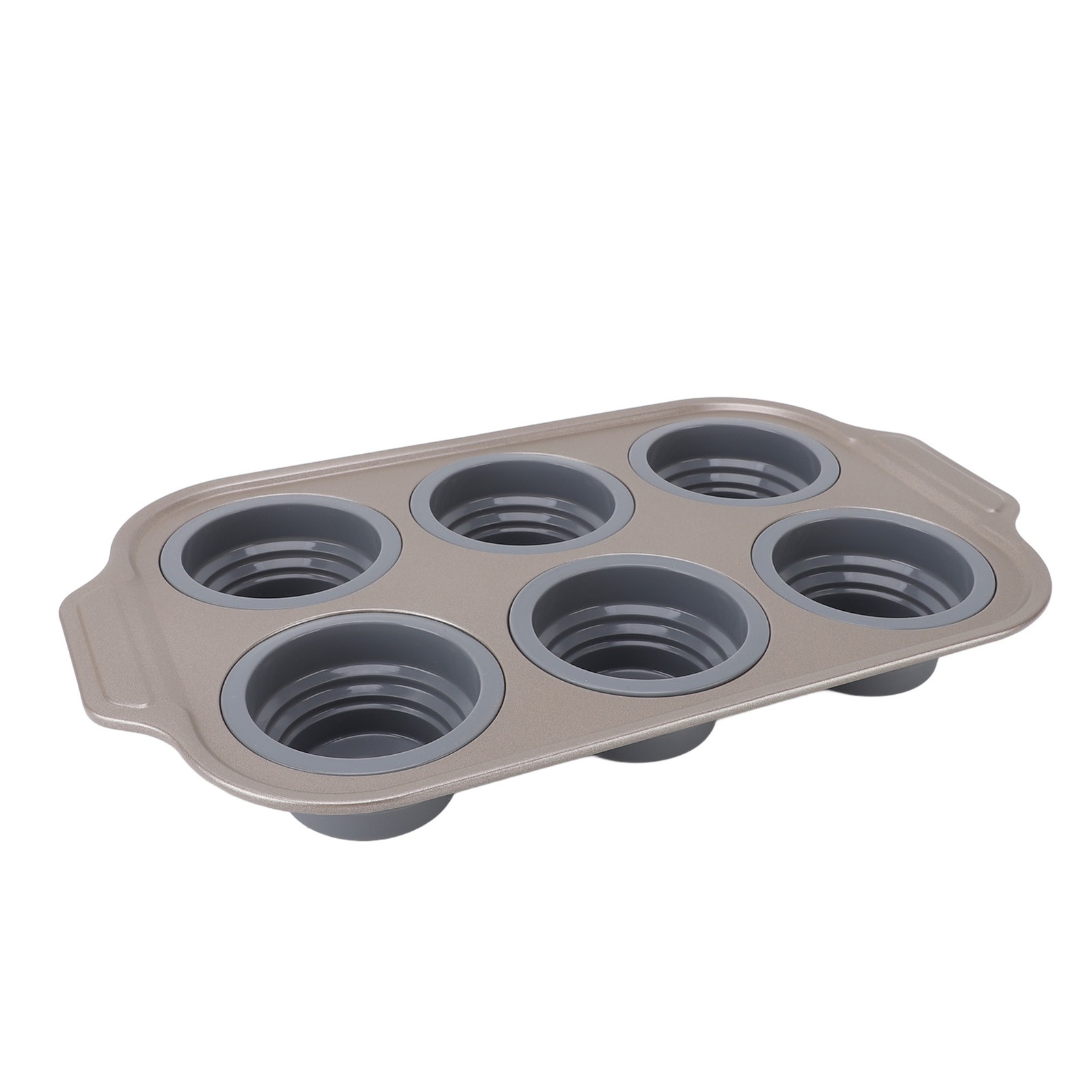 Cake Maker Tray Foldable Press Type Easy Release Silicone 6 Cupcake Baking Tray