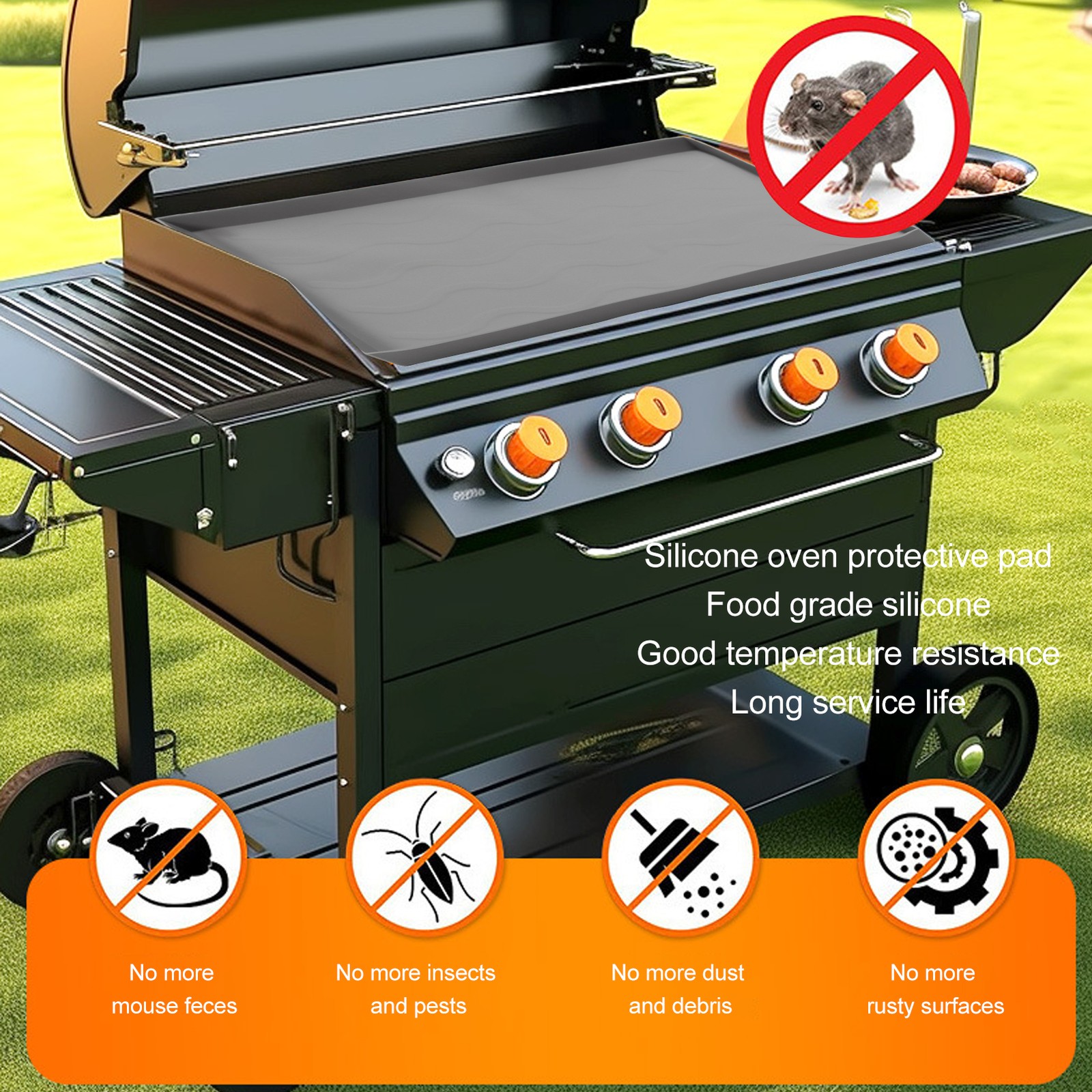 28 Inch Grill Silicone Hood Baking Tray Protector Cleaning Pad Grey
