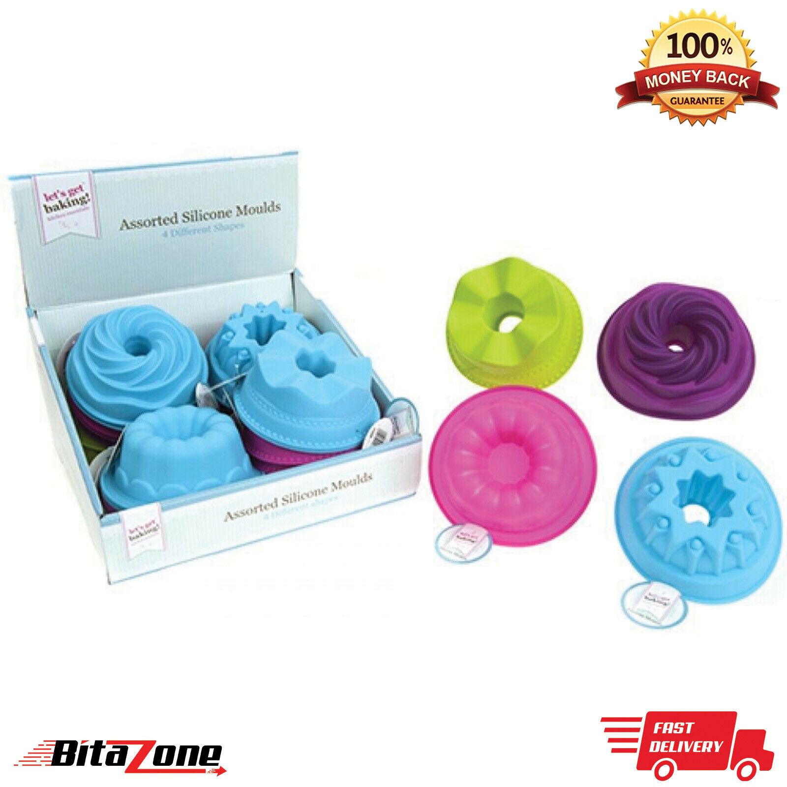 Silicone Cake Chocolate Moulds Assorted Colors Baking Cups-Cookies 4pcs