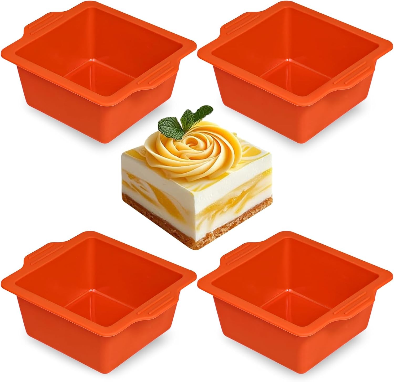 Webake Mini Square Cake Tin 4‘’ Silicone Cake Moulds for Baking 4 Pcs Mini Chees