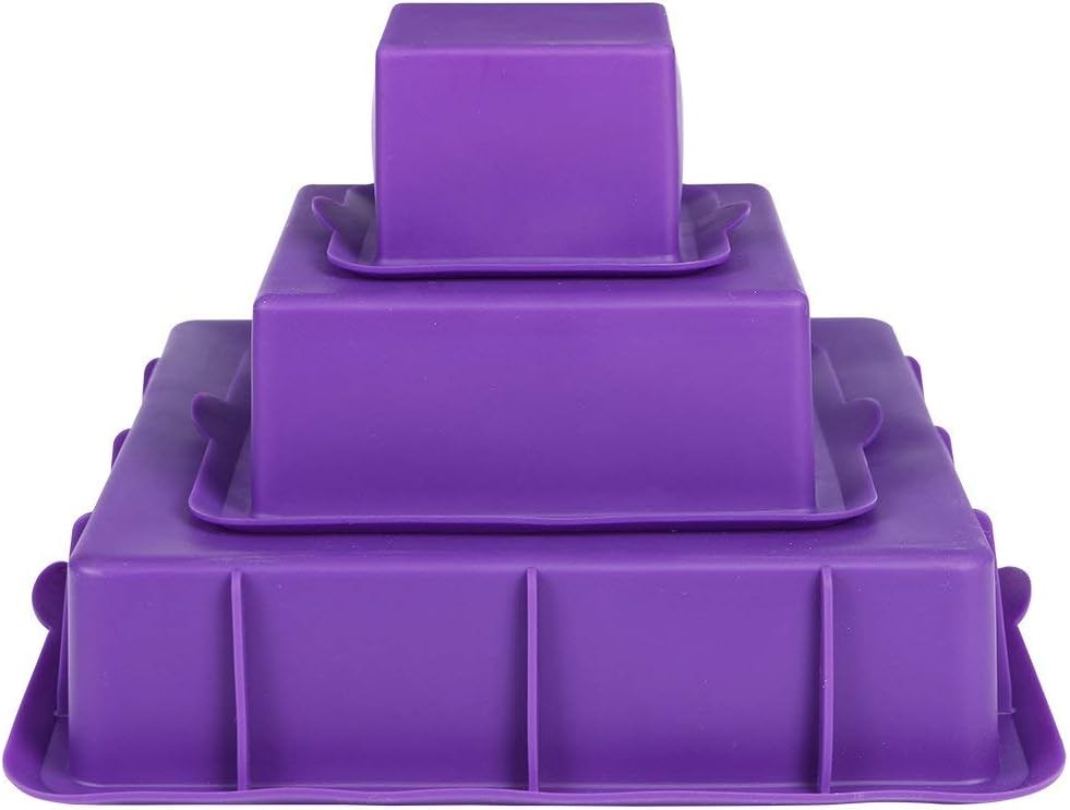webake Silicone Cake Moulds Square Cake Tins Set of 3 Tier Layer 9" 6" 3" Bakin