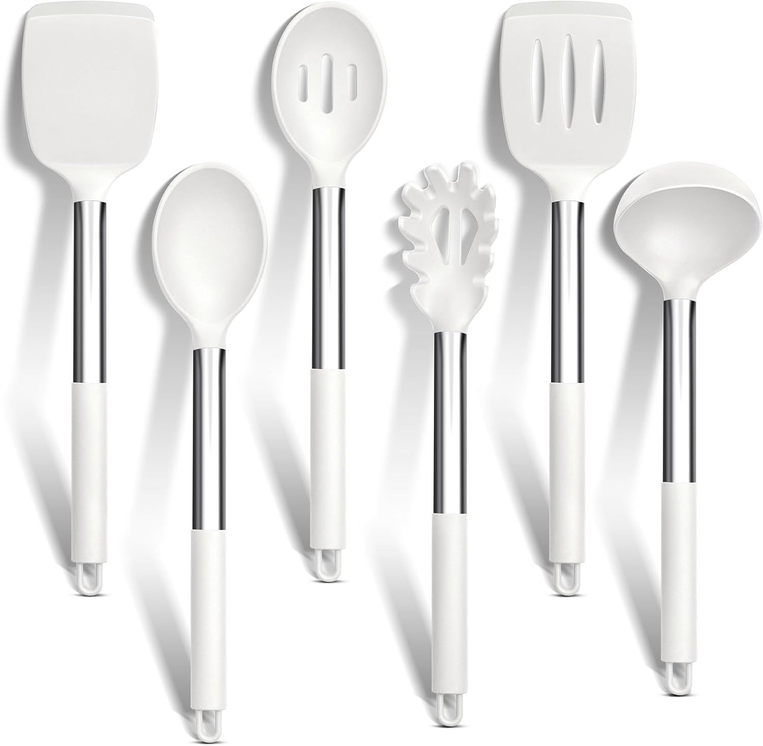 Kitchen Utensils Set, 6 Pcs Silicone White Cooking Utensils Include Ladle Turner