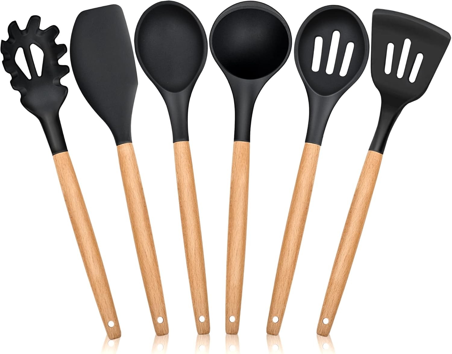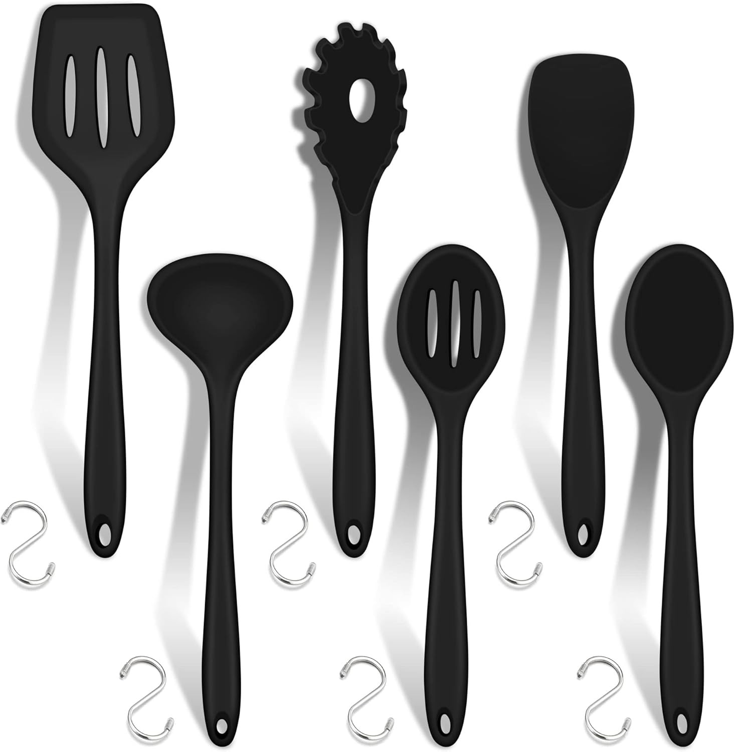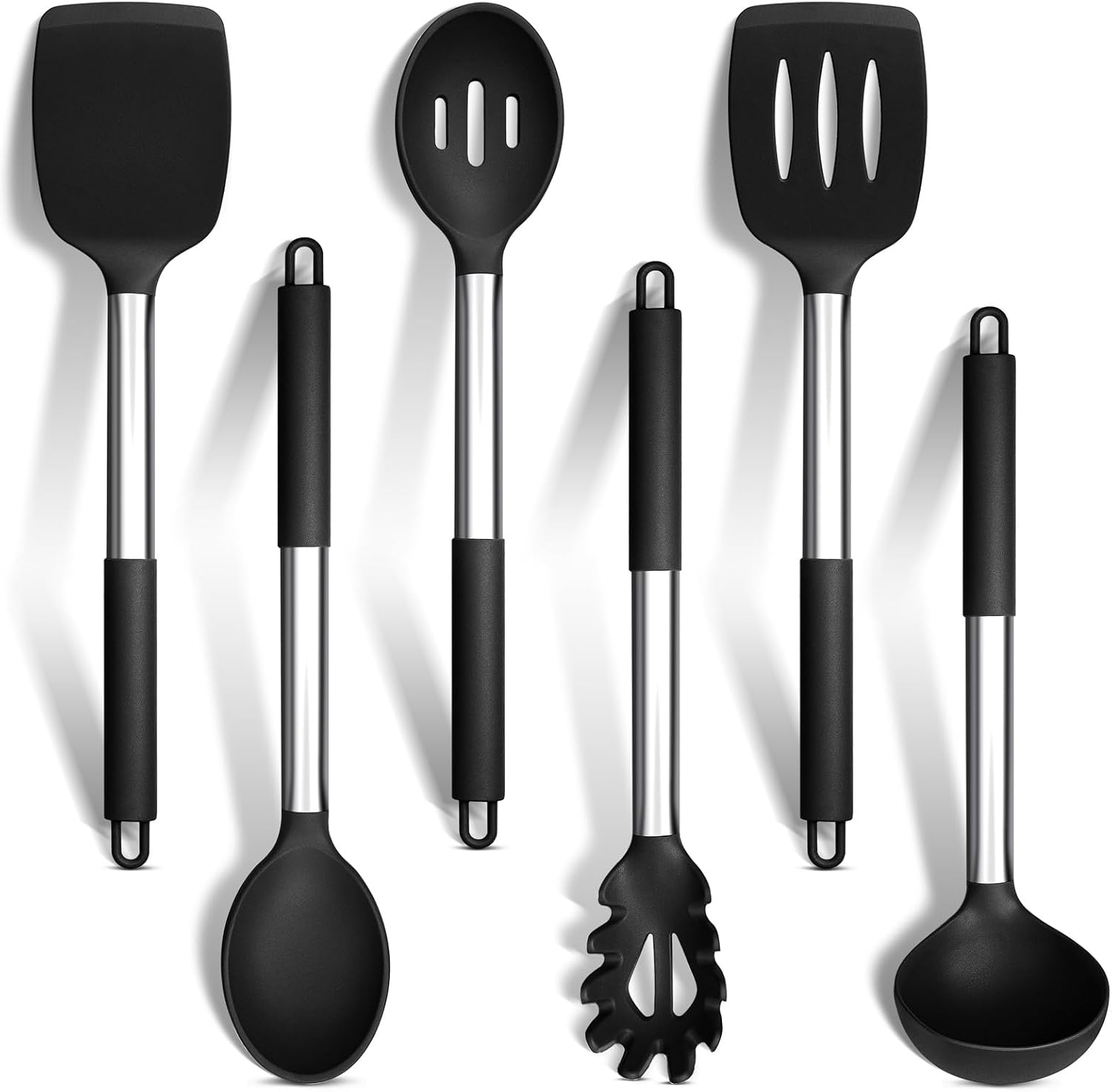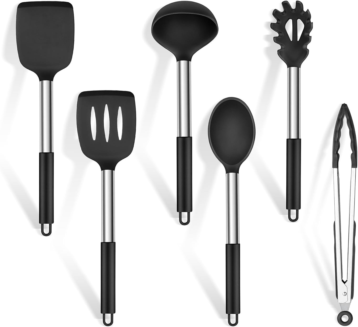 Kitchen Utensils Set, 6 Pcs Black Silicone Cooking Utensils, Heat Resistant Stai