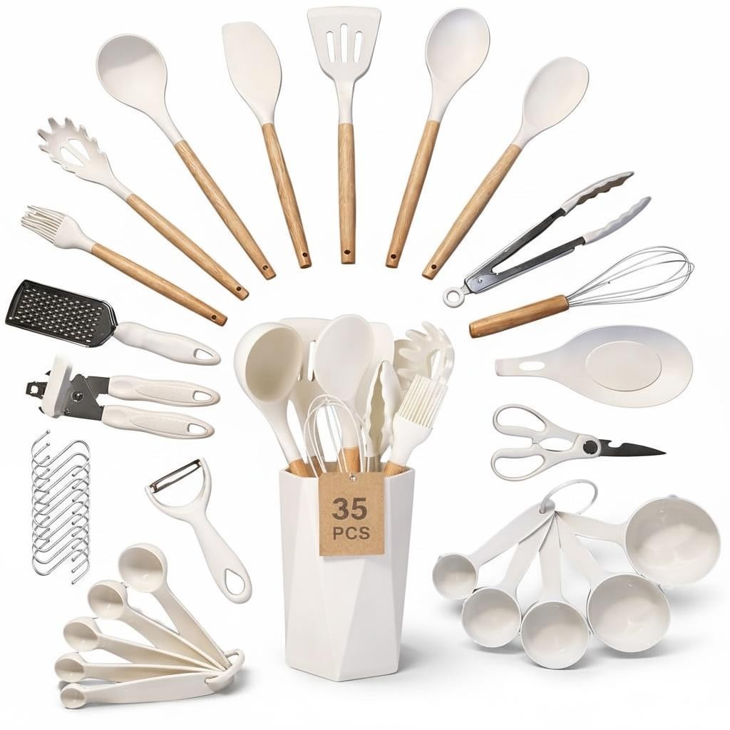 35-Piece Non-Stick Silicone Cooking Utensils Set – Cream-FREE DELIVERY