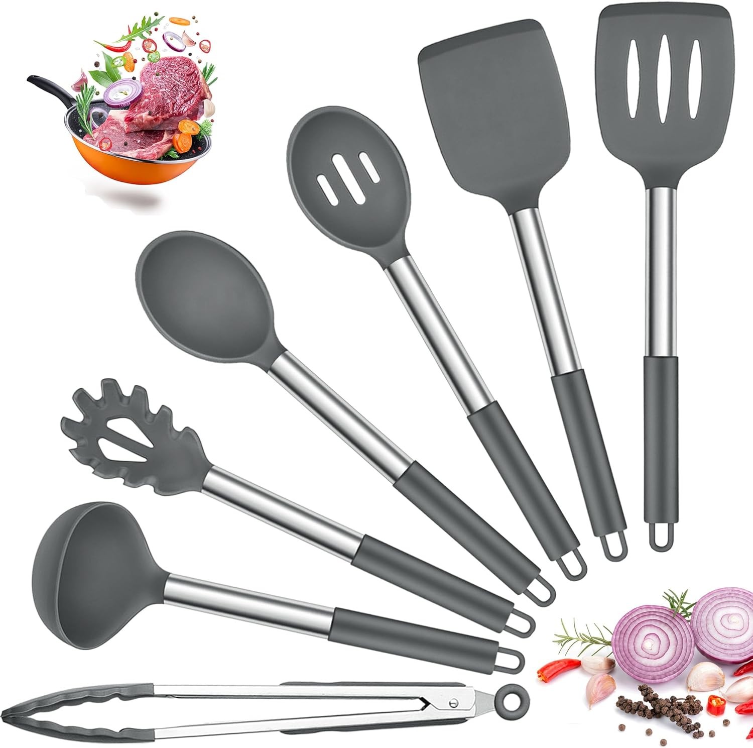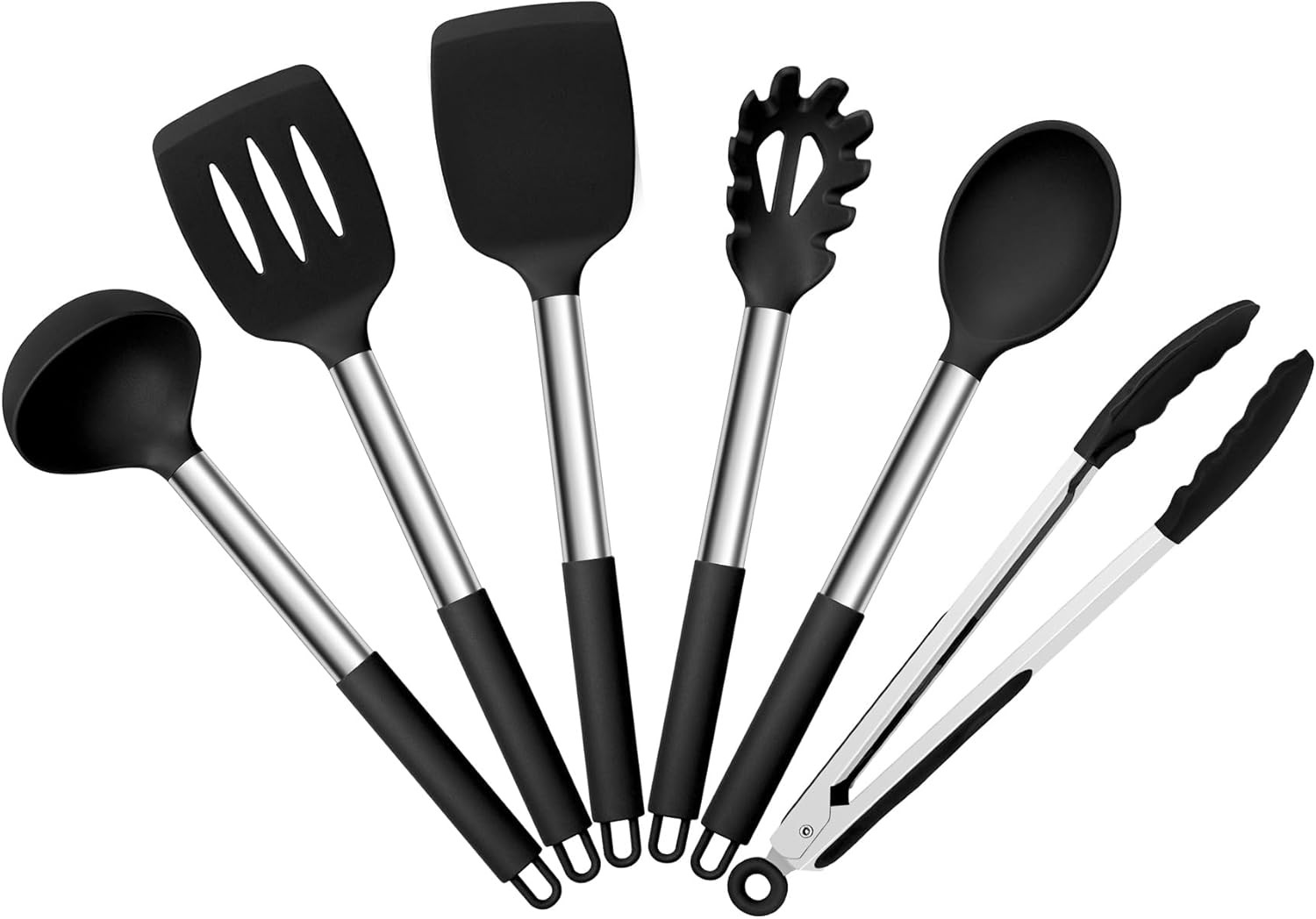 Joyfair Kitchen Utensils Set, 7 Pcs Silicone Cooking Utensils with Stainless St