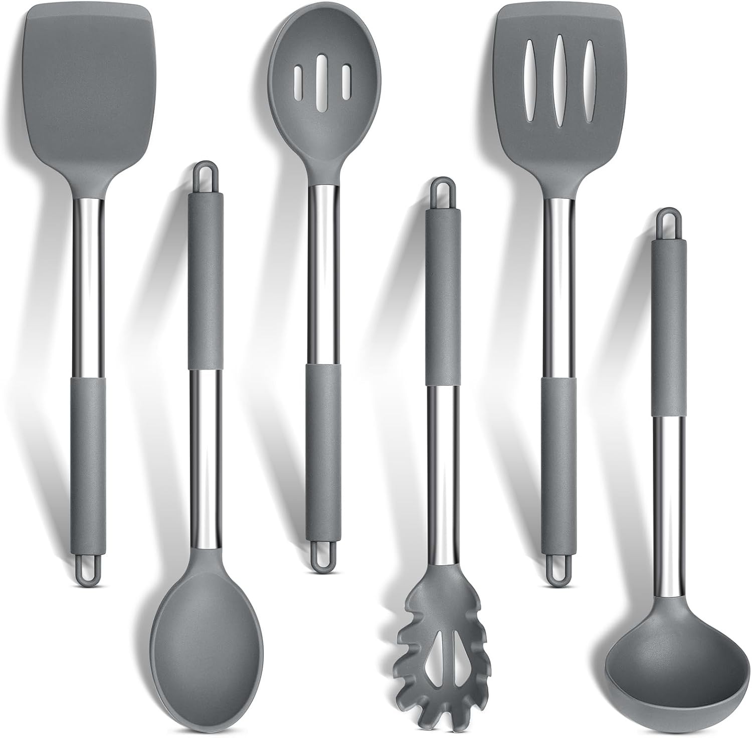 Kitchen Utensils Set, 6 Pcs Silicone Cooking Utensils with Stainless Steel Handl