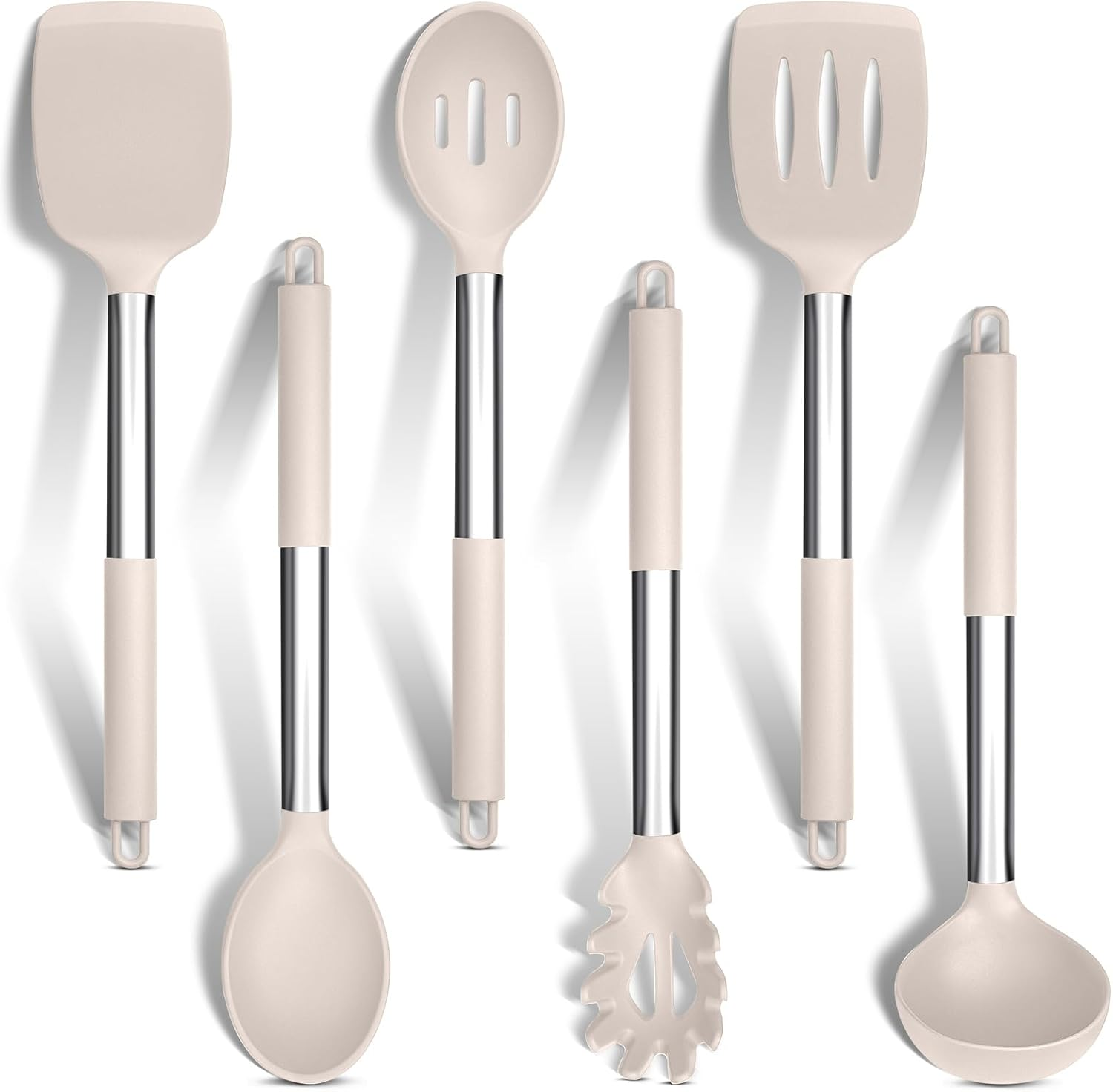 Joyfair Kitchen Utensils Set, 6 Pieces Silicone Cooking Utensils Set, Natural W