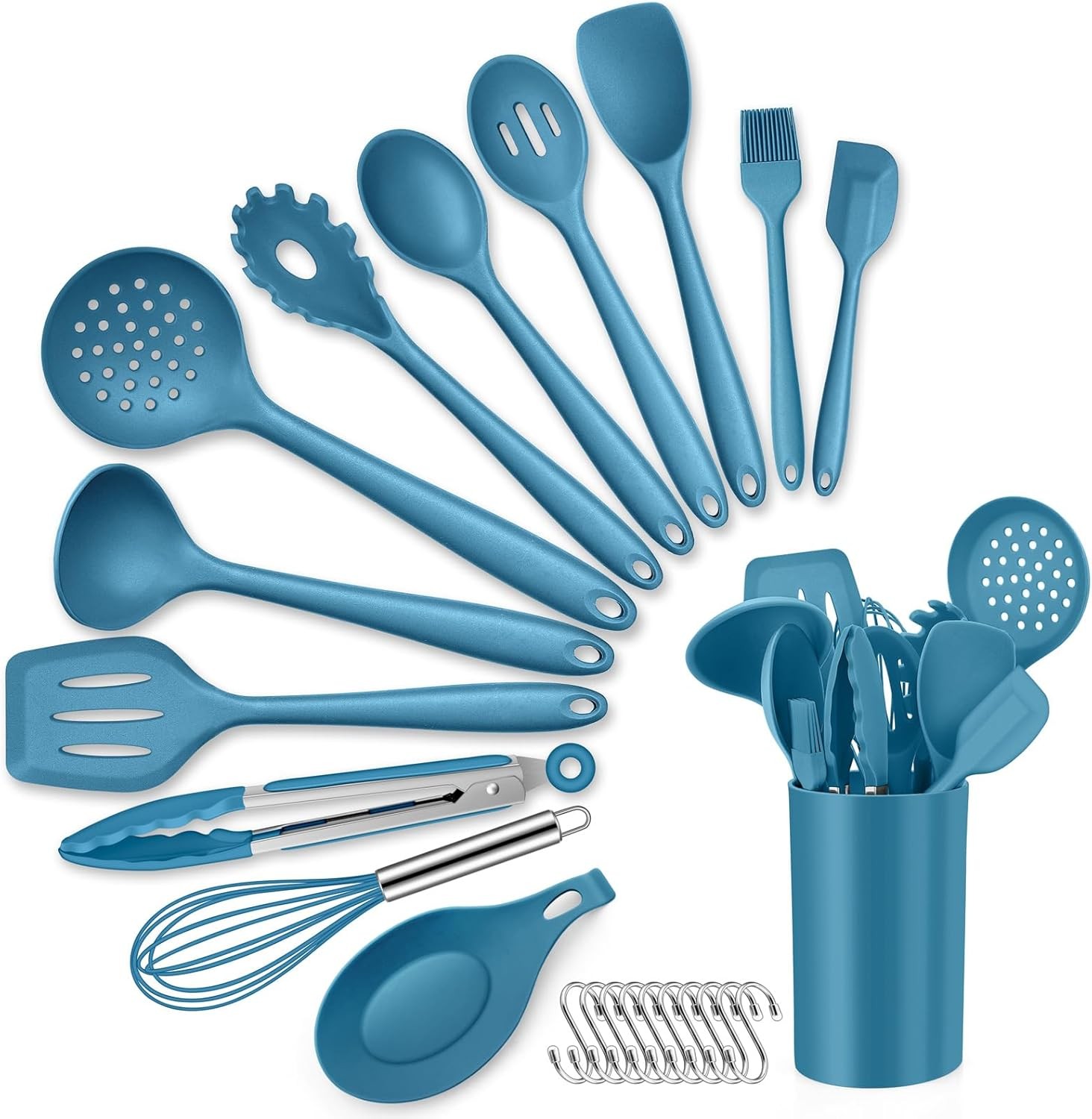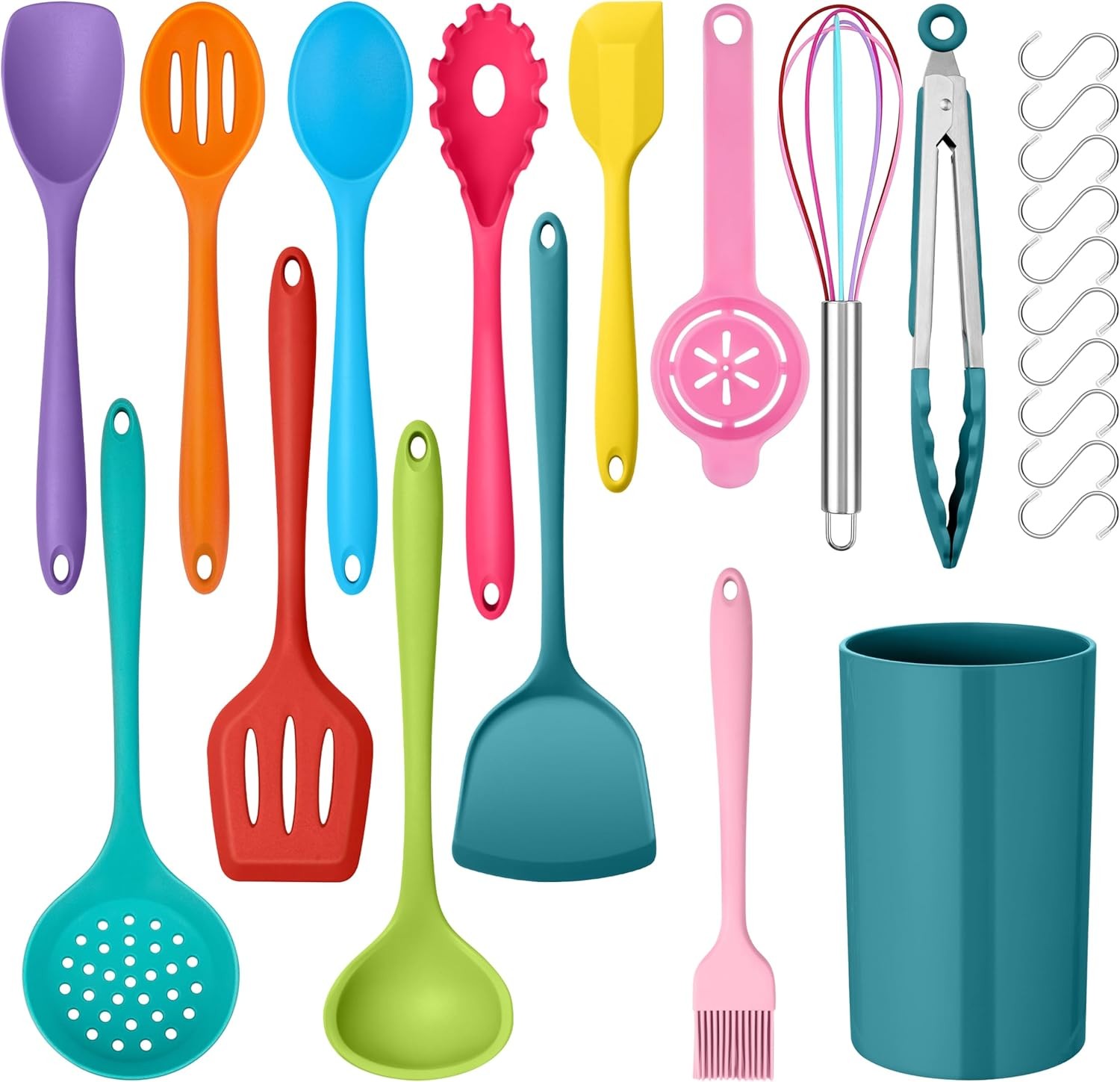 Onader 24 Pcs Kitchen Utensils Set, Silicone Cooking Utensils with 10 Hooks, He
