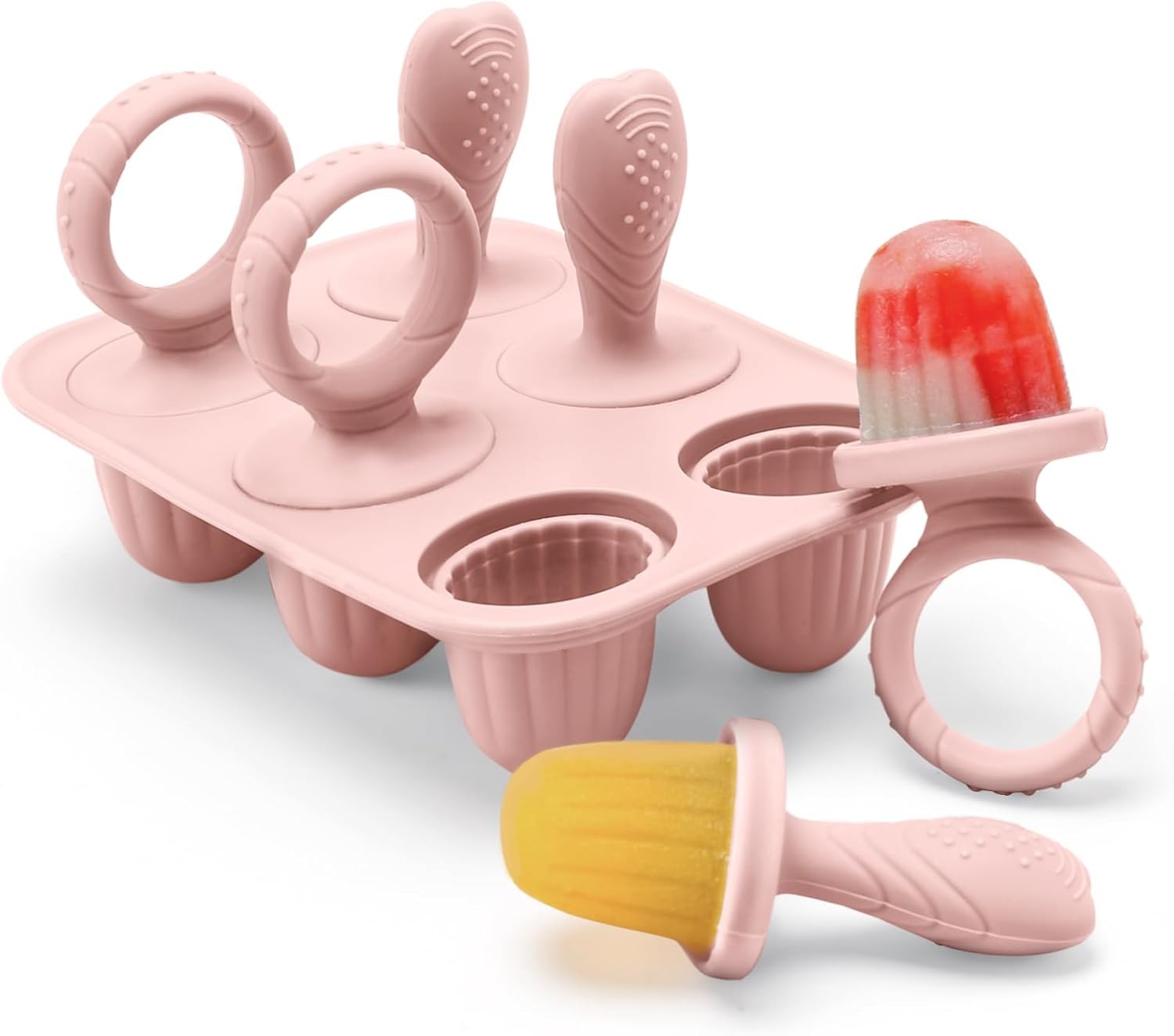 PandaEar Silicone Toddler Ice Lolly Mould with Sticks, 6-Cavity Popsicle Molds, Mini Frozen Breastmilk Ice Pop Cream Moulds for Infant