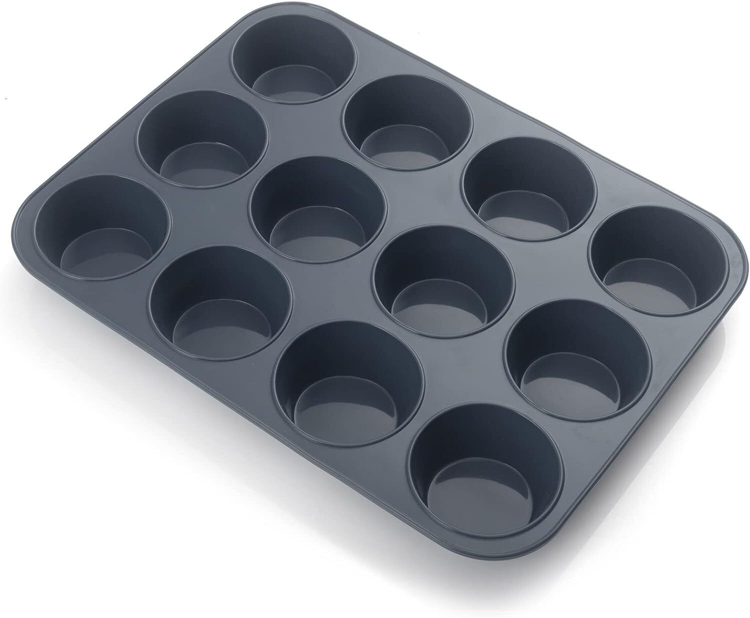 Super Kitchen 12 Cup Regular Size Silicone Muffin Tray with Metal Frame, Grey