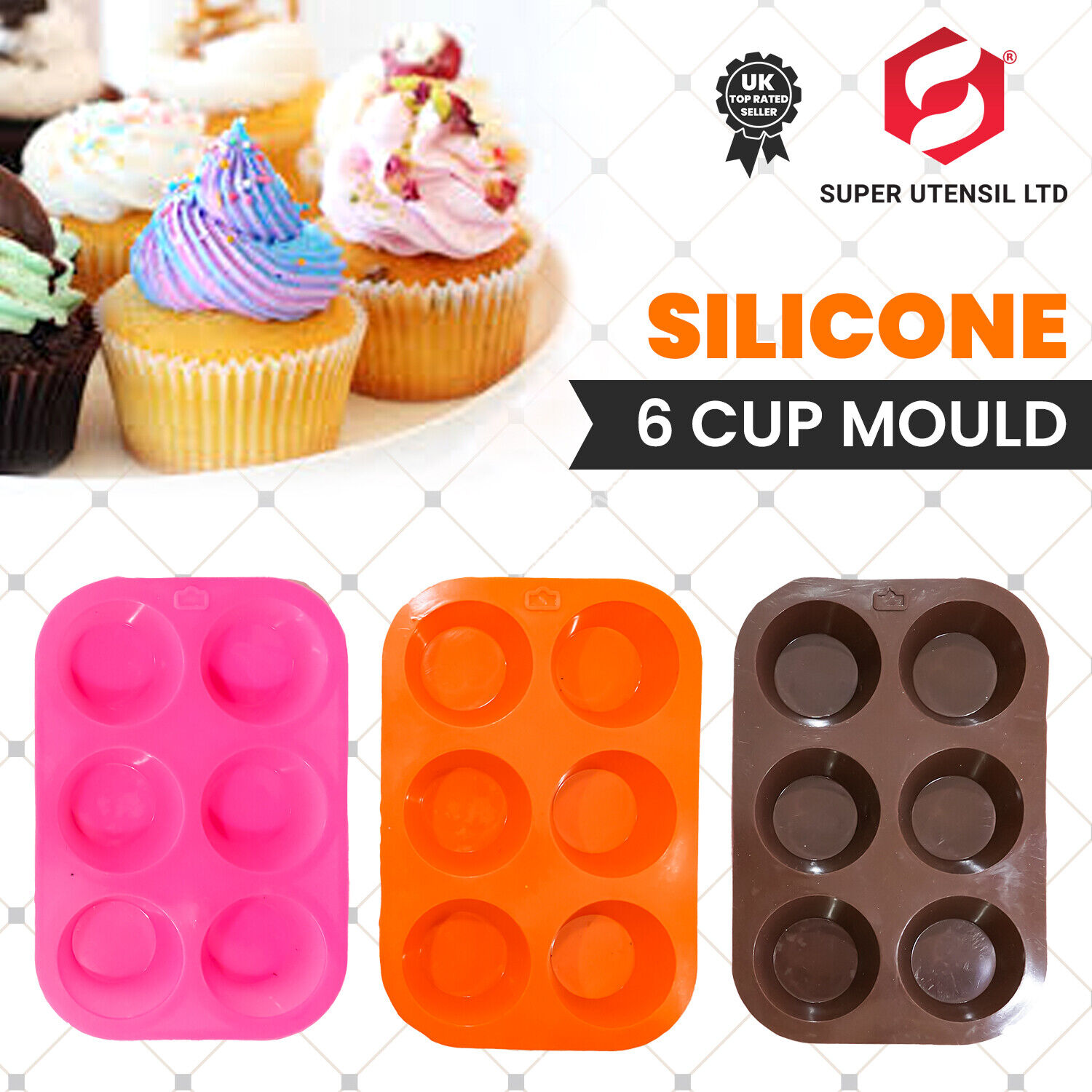 Deep Large 6 Cup Silicone Muffin Tray Cupcake Mould Tin Baking Yorkshire Pudding