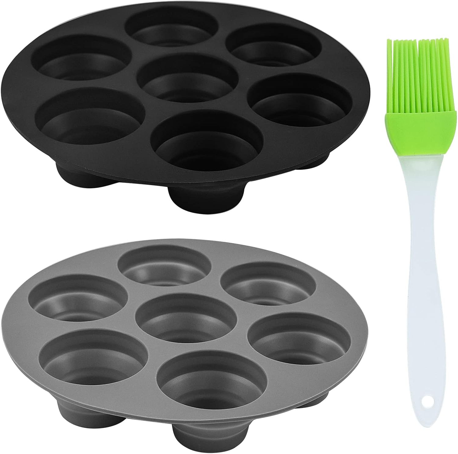BEHAHAI 2pcs Silicone Muffin Pans with Brush,7 Cup Bun Tray Round Non Stick...