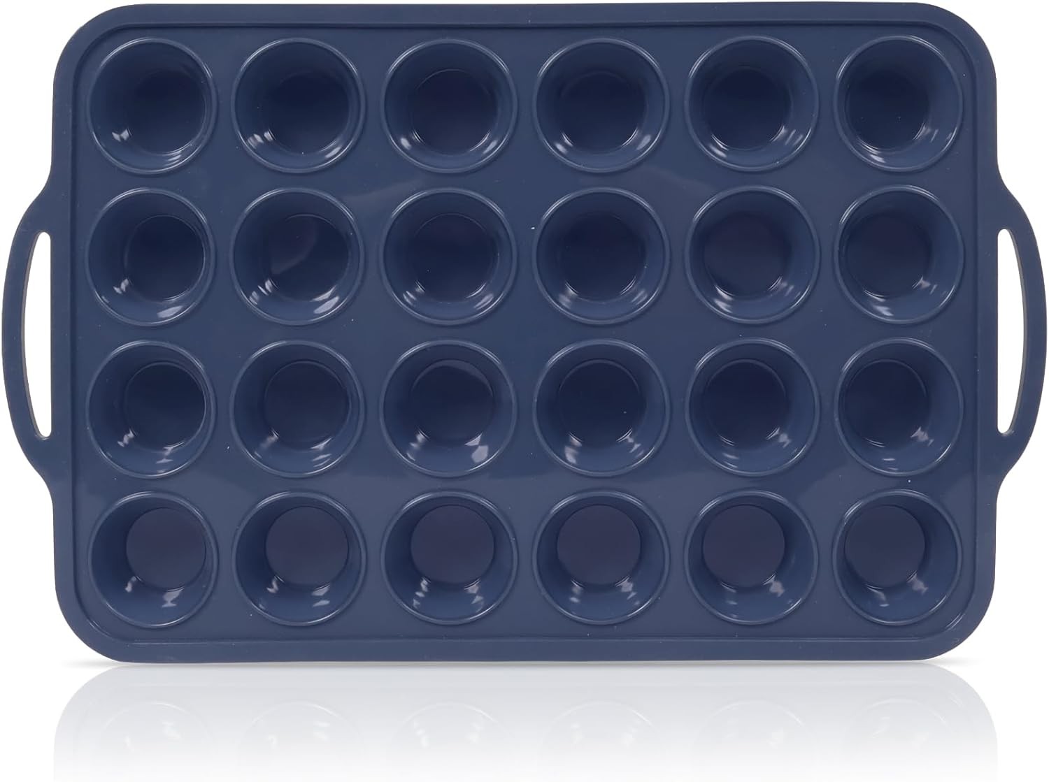 SUPER KITCHEN Mini Muffin Tray 24 Cup Silicone Muffins Pan, Non-Stick Cupcake T