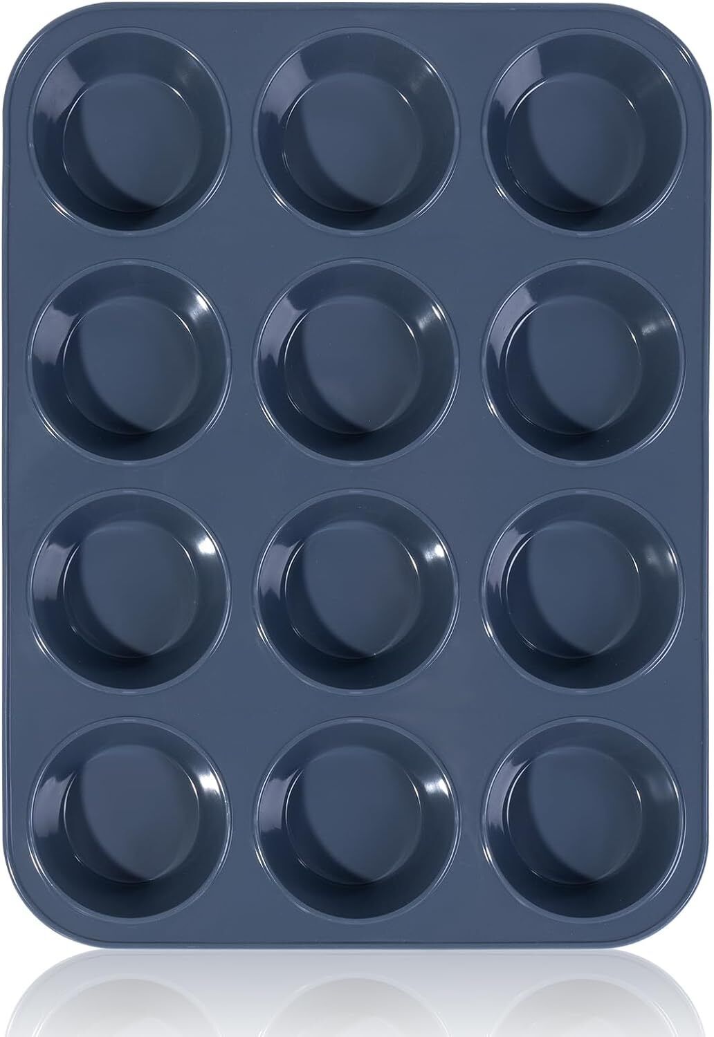 SUPER KITCHEN Large Muffin Tray 12 Cup Silicone Muffin Pan, Non-Stick Muffin Cu