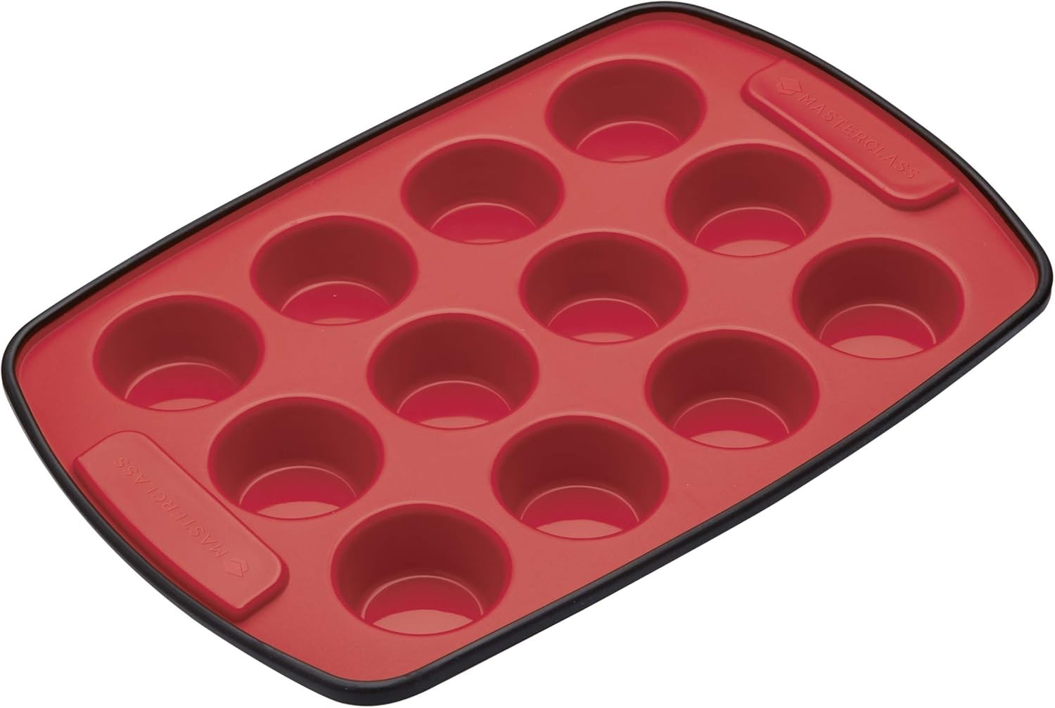 MasterClass Smart Silicone Mini Muffin Tray with 12 Holes, Oven Safe LFGB Grade
